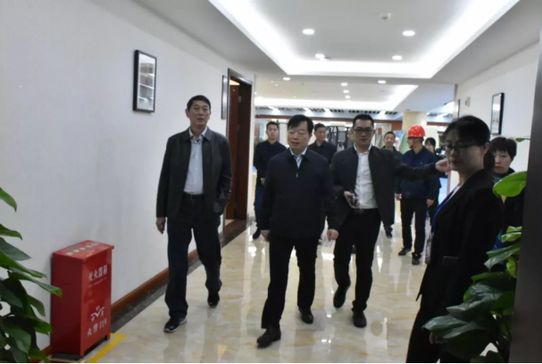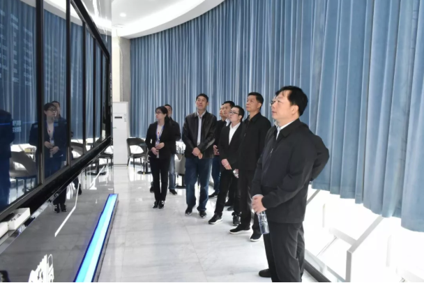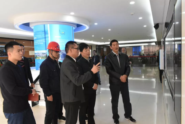 领导们察看中控室