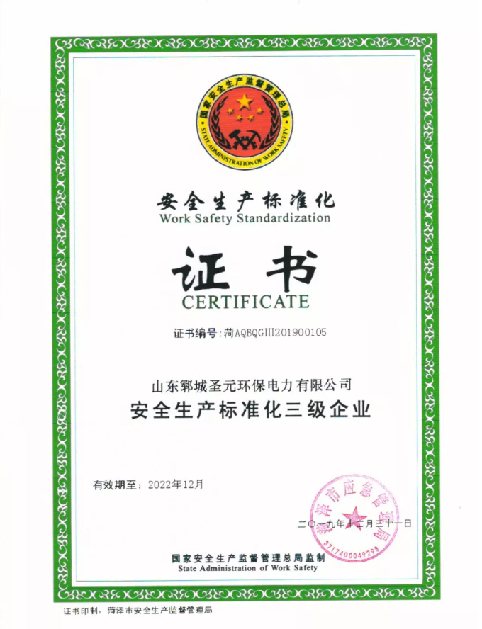 安全生产标准化证书