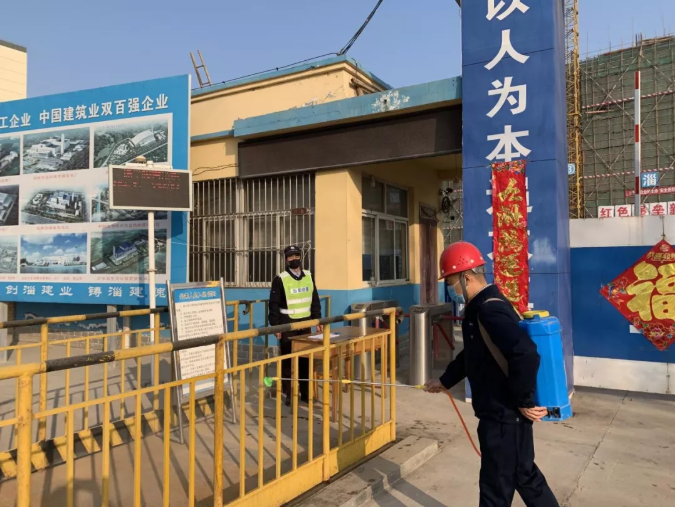 鄄城项目加强了门卫管理机制,配置红外温度检测,对所有返厂人员的体温、身体状况、有无经停或居住在疫情重点区域等情况做详细了解,并记录;严格监督食堂工作人员身体状况,从源头上杜绝食物污染、病毒传播现象的发生;食堂实行统一分餐制,避免排队、聚集用餐;每天进行两次厂区全覆盖、无死角消毒,为员工们牢牢筑起一道防疫之墙。