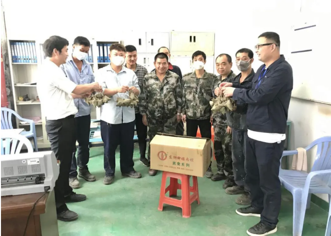 何敏副总现场转达了董事长的心意。南安伟德国际1946bv官网人事行政部和泉州伟德国际1946bv官网项目部统一组织下发饱含祝福与关爱的端午粽。手提粽子、心领祝福,员工们喜悦之情溢于言表。