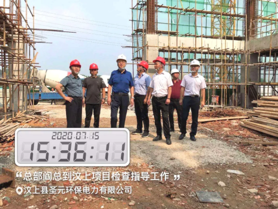 阎爱周先后查看主厂房、综合楼、渗滤液处理站等施工现场,听取朱玉成总指挥汇报,实地察看项目进展。