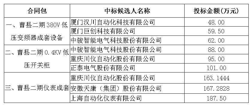 3、中标候选人及金额