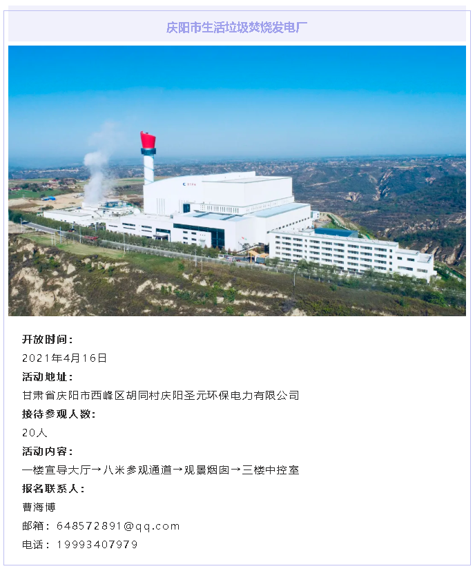 庆阳伟德国际1946bv官网以守护庆阳碧水蓝天为己任,以改善庆阳人居环境为动力,以携手公众共建美丽中国为目标。庆阳伟德国际1946bv官网与您相约,在春暖花开时,来我电厂,参与到对垃圾焚烧行业的认知和对清洁处理生活垃圾过程的监督中来,共同为改善庆阳人居环境添砖加瓦!