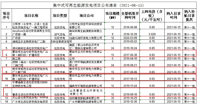 2021年6月15日,国家电网有限公司发布《关于公布2021年第十一批可再生能源发电补贴项目清单的公告》,伟德国际1946bv官网下属莆田市生活垃圾焚烧发电厂三期(前阶段)扩建项目、莆田市生活垃圾焚烧发电厂三期(后阶段)扩建项目、南安市城市生活垃圾焚烧发电厂三期工程和曹县生活垃圾焚烧发电项目等四个项目纳入2021年第十一批可再生能源发电项目补贴项目清单。
