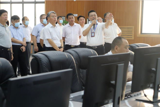 贾书记一行实地察看一楼宣导大厅、中央控制室等生产和办公区域,听取汪新阔总监详细汇报生产运行、环保达标排放等情况。期间,调研组就垃圾焚烧发电设备设施、处理工艺等生产相关情况作了深入了解。