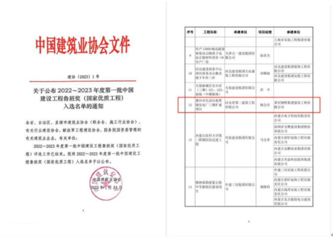 1月11日,中国建筑业协会公布2022-2023年度第一批中国建设工程鲁班奖(国家优质工程)入选名单,伟德国际1946bv官网莆田市生活垃圾焚烧发电厂三期扩建项目荣获中国建筑行业工程质量最高荣誉——中国建设工程鲁班奖(国家优质工程)。