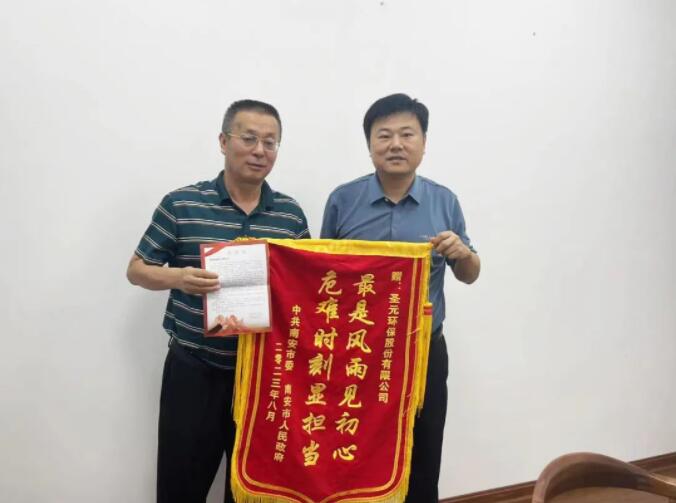 9月6日,南安市城管局局长侯小泉代表南安市委、市政府为南安伟德国际1946bv官网送上一封感谢信和一面锦旗,对在南安市受“杜苏芮”台风影响导致连续强降雨期间,伟德国际1946bv官网勇于担当、积极响应并投入人力物力参与抢险救灾的行动表示感谢。