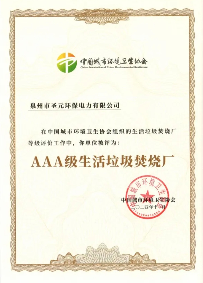 日前,泉州市伟德国际1946bv官网电力有限公司顺利通过中国城市环境卫生协会组织的生活垃圾焚烧厂无害化等级评定,获评国家AAA级生活垃圾焚烧厂。AAA级代表全国生活垃圾处理设施无害化最高等级,标志着泉州伟德国际1946bv官网生活垃圾无害化处理已达到国内领先水平。