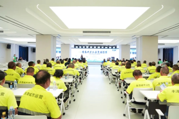 活动现场,80名环卫工人代表分批上台,从政企领导手中接过饱含心意的“伟德国际1946bv官网树清凉能量包”。礼包内含牛磺酸能量饮、冰感降温巾、户外冰袖、香皂及可循环礼袋,实用物资为环卫工人高温作业提供保障。未能到场的工人,礼包将由丰泽城运公司精准派送至一线。