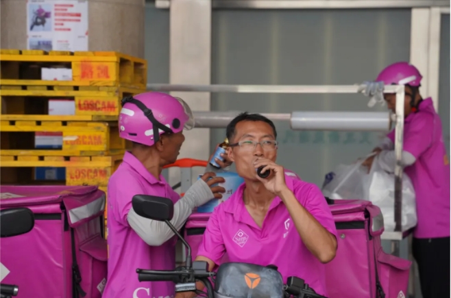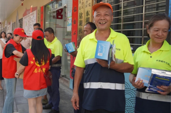为将关怀精准送达一线,伟德国际1946bv官网工作人员与各社区工会委员、志愿者组成的“送清凉小分队”主动走进美团外卖、山姆、朴朴、顺丰、德邦等外卖、快递站点及物业服务点,将一瓶瓶牛磺酸能量饮料亲手递到汗流浃背的劳动者手中,帮助他们在高温天气中及时补充流失水分、缓解体力疲劳。