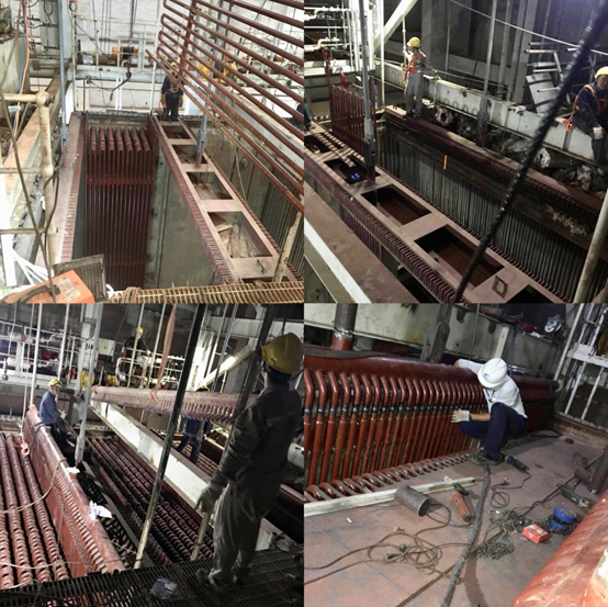 省煤器更换检修现场