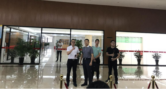 李仁总经理向陈涛部长介绍社区共享中心设施