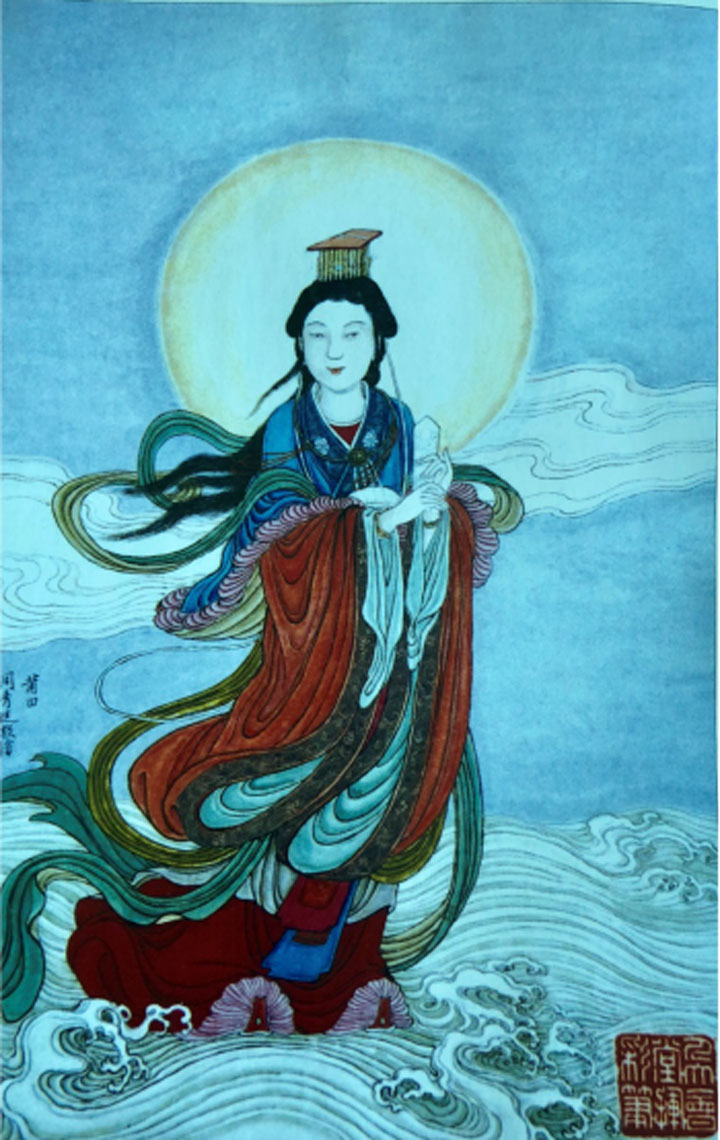 妈祖,被称为天上圣母、天后等,原名林默,出生于莆田市秀屿区湄洲岛。大海深不可测,风浪又无情,渔民出海频频遇险。妈祖解救危难,造福民众,救助渔民无数。东南沿海的人们信仰妈祖,希望将妈祖的博爱、扶弱济贫、勇敢无畏、不屈不挠的精神发扬光大,把妈祖文化的精髓融入日常生活中,并传给下一代。