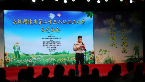 晚会开始,莆田市城管执法局副局长郑金清代表主办单位,对环卫工人致以节日问候,感谢工人辛勤工作,“舍得一身脏,换来城市净”,并祝环卫工人们节日快乐。环卫工人代表发言,对各级政府部门的重视、关心、支持表达谢意,表示认真工作,不辜负嘱托。会上,莆田市总工会林志扬副主席等领导对荔盛公司环卫工人发放毛巾、水杯等纪念品表达慰问。