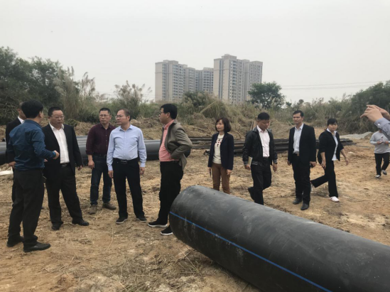 何才成市长一行在林志辉厂长陪同下深入现场,检查尾水排放改造工程。林志辉厂长就前期准备工作、施工倒排计划和现场施工情况做了详细汇报。