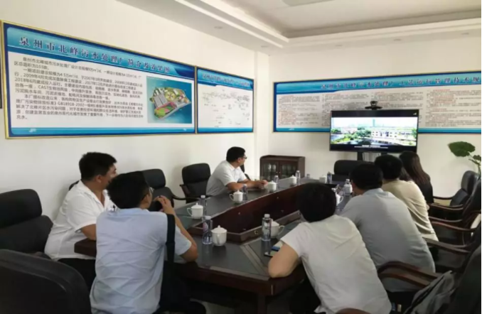 林晓枫一行观看了伟德国际1946bv官网企业宣传片,了解伟德国际1946bv官网企业概况,并对北峰污水处理厂做实地考察。北峰污水处理厂提标改造工程于去年10月竣工验收,是泉州市率先完成提标改造建设任务的污水处理厂。项目新增的高效沉淀池和反硝化深床滤池等设备,有效降低了污水中污染物的浓度,出水水质由一级B标准提升至地表水Ⅳ类水质标准。