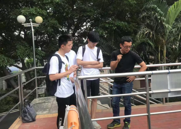 环保宣导员向中学生现场讲解沉降池作用