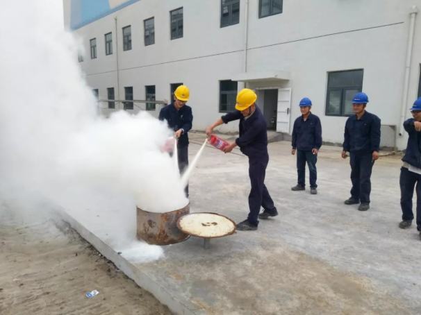 灭火演练中,主要模拟并演示了突发火灾事故,如何进行事件汇报、分析、处理以及如何正常启用事故应急救援预案的全过程情境。随后,参训员工依次使用灭火器对火源进行灭火操作。