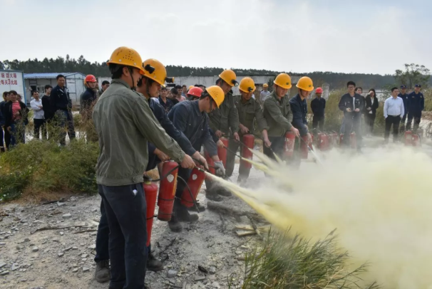 在室外演练场,东庄中队指挥官就消防知识、日常各种火灾的应对、灭火器的使用等进行讲解。随后,参训员工使用灭火器进行灭火操作。